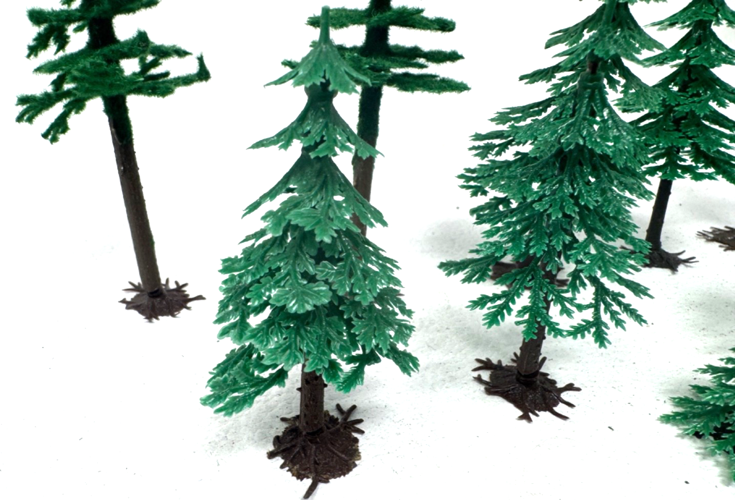 Die Füße der Bäume (Wurzeln) können gedreht werden, damit die Bäume an Hängen platziert werden können.Maßstab: H0 / HO / 1:87 / TT / 1:120 / N / 1:160
