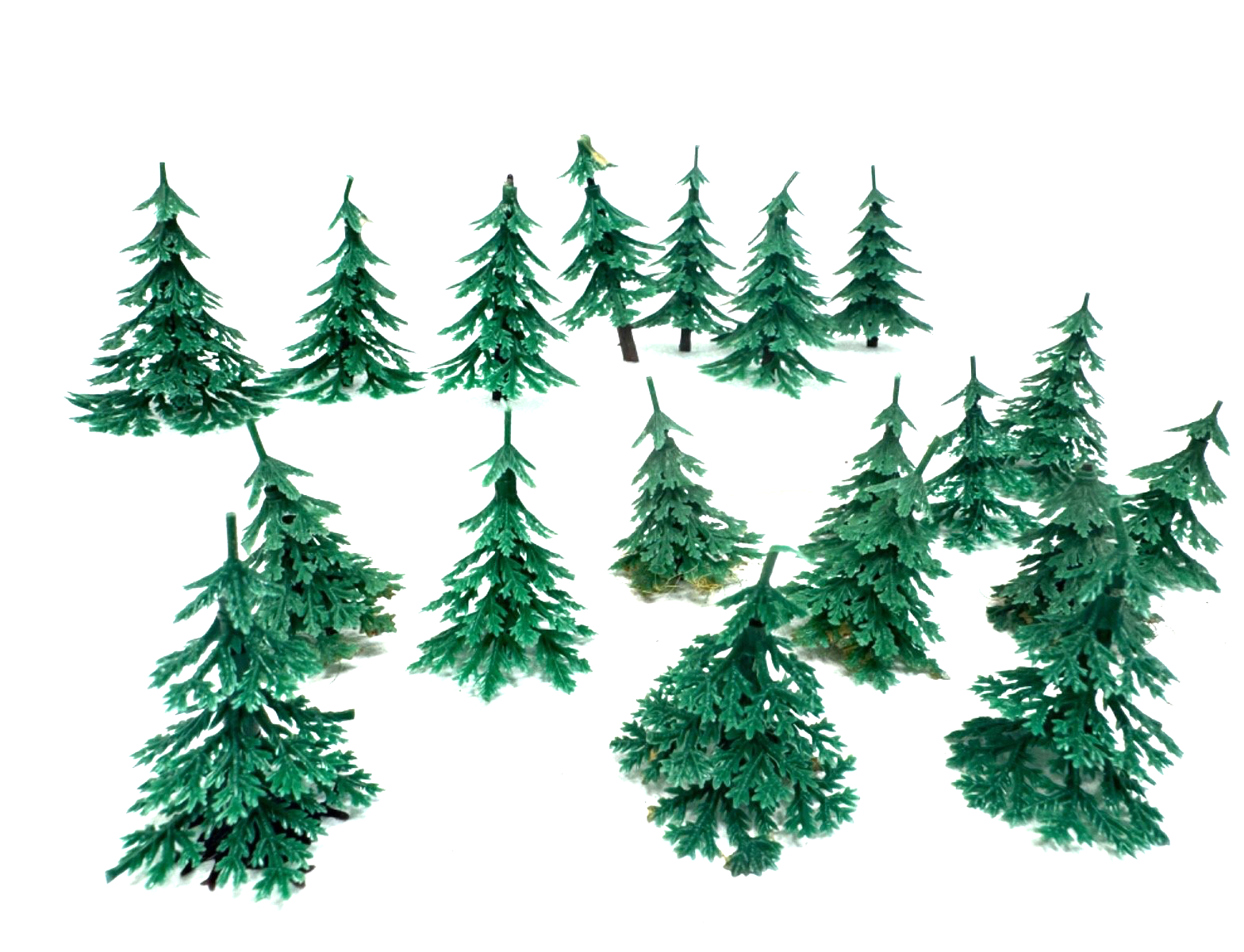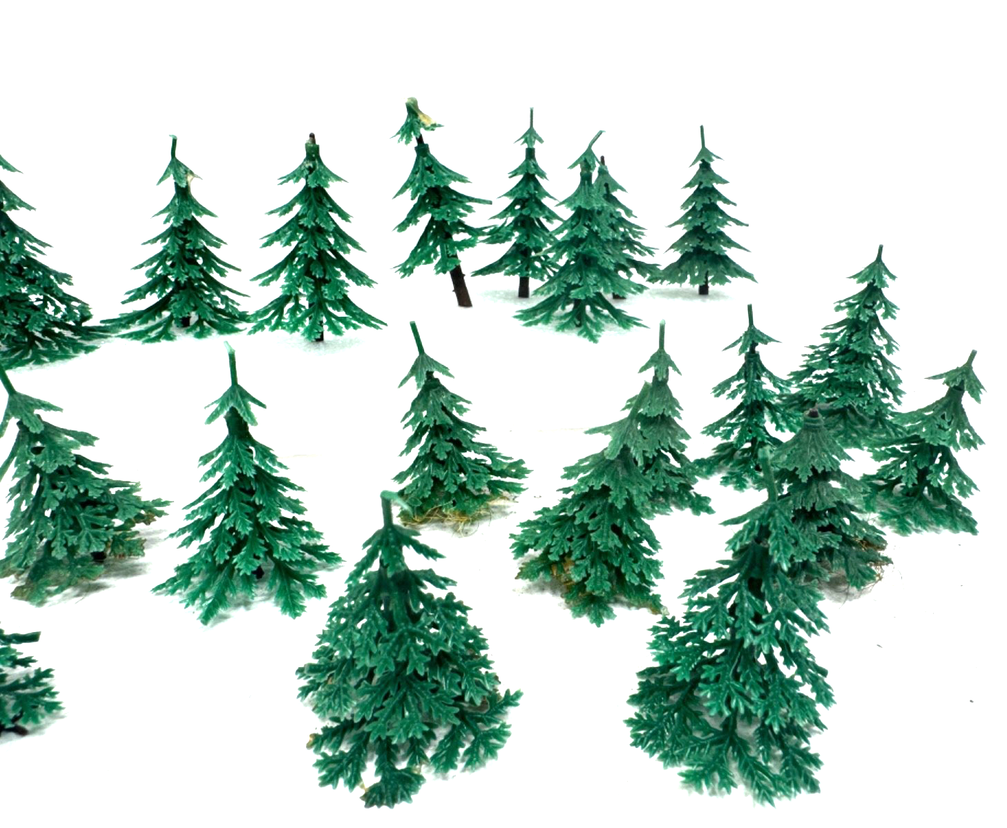 Die Bäume haben keine Wurzeln mehr (unvollständig), können nur in einem Loch fixiert werden. Teilweise auch Stämme abgebrochen und dadurch verkürzt.Maßstab: H0 / HO / 1:87 / TT / 1:120 / N / 1:160