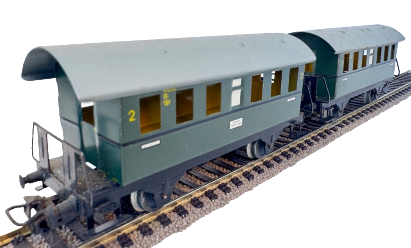 2 Stück Märklin Personenwagen 2. Klasse 4051 Stg - Blech - HO H0 1:87Farbe: grün / grau / schwarzMaßstab: HO / H0 / 1:87Zustand: Gebraucht (siehe Fotos)Lagerfach: GE-083Achtung! Nicht geeignet für Kinder unter 36 Monaten. Erstickungsgefahr aufgrund von Kleinteilen, die verschluckt werden können.Worldwide shipping - please write to us regarding shipping costs so that we can search for the cheapest and safest shipping for you. We ship worldwide!Alle Produkte welche wir als Gebraucht gekennzeichnet haben, unterliegen gem. § 25a UStG der Differenzbesteuerung, ein Ausweis der Mehrwertsteuer auf der Rechnung erfolgt nicht.Unser komplettes H0/HO/1:87 Sortiment - Unser komplettes N/1:160 Sortiment - Unser komplettes Modellauto Sortiment