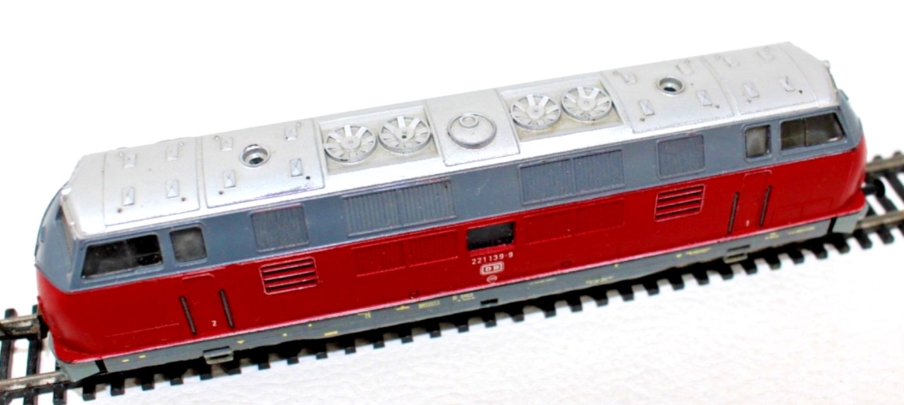 Ausführung in typischer Farbgebung der Deutschen Bundesbahn mit entsprechend aufgebrachter Beschriftung der Betriebsnummer 221 139-9.