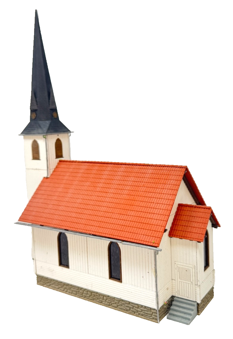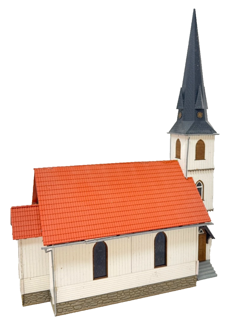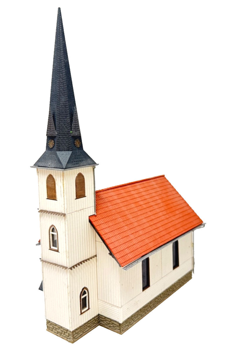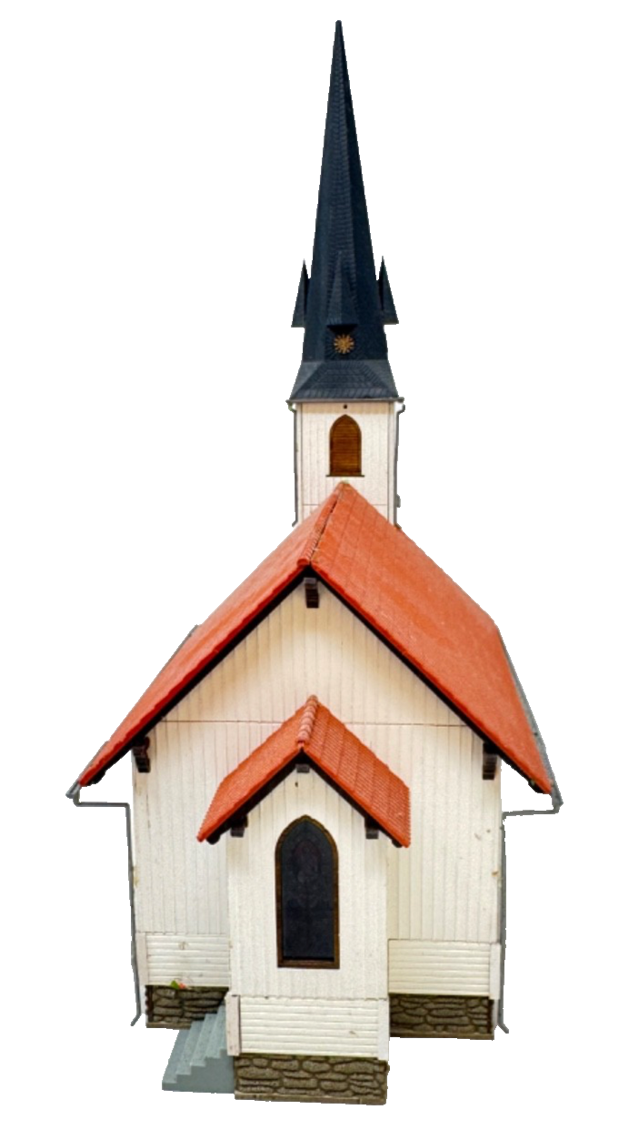 Modell der kleinsten Holzkirche Deutschlands. Das Vorbild steht in der Ortschaft Elend im Harz und wurde 1897 als Kirche eingeweiht. Wie im Original sind auch im Modell die Wände aus echtem Holz gestaltet. Das Dach, die Regenrinnen und Fallrohre bestehen aus Kunststoff. Die farbig bedruckten Fensterscheiben kommen durch eine zusätzliche Innenbeleuchtung (z.B. mit Busch Beleuchtungsset 4280 nicht enthalten) besonders gut zur Geltung.