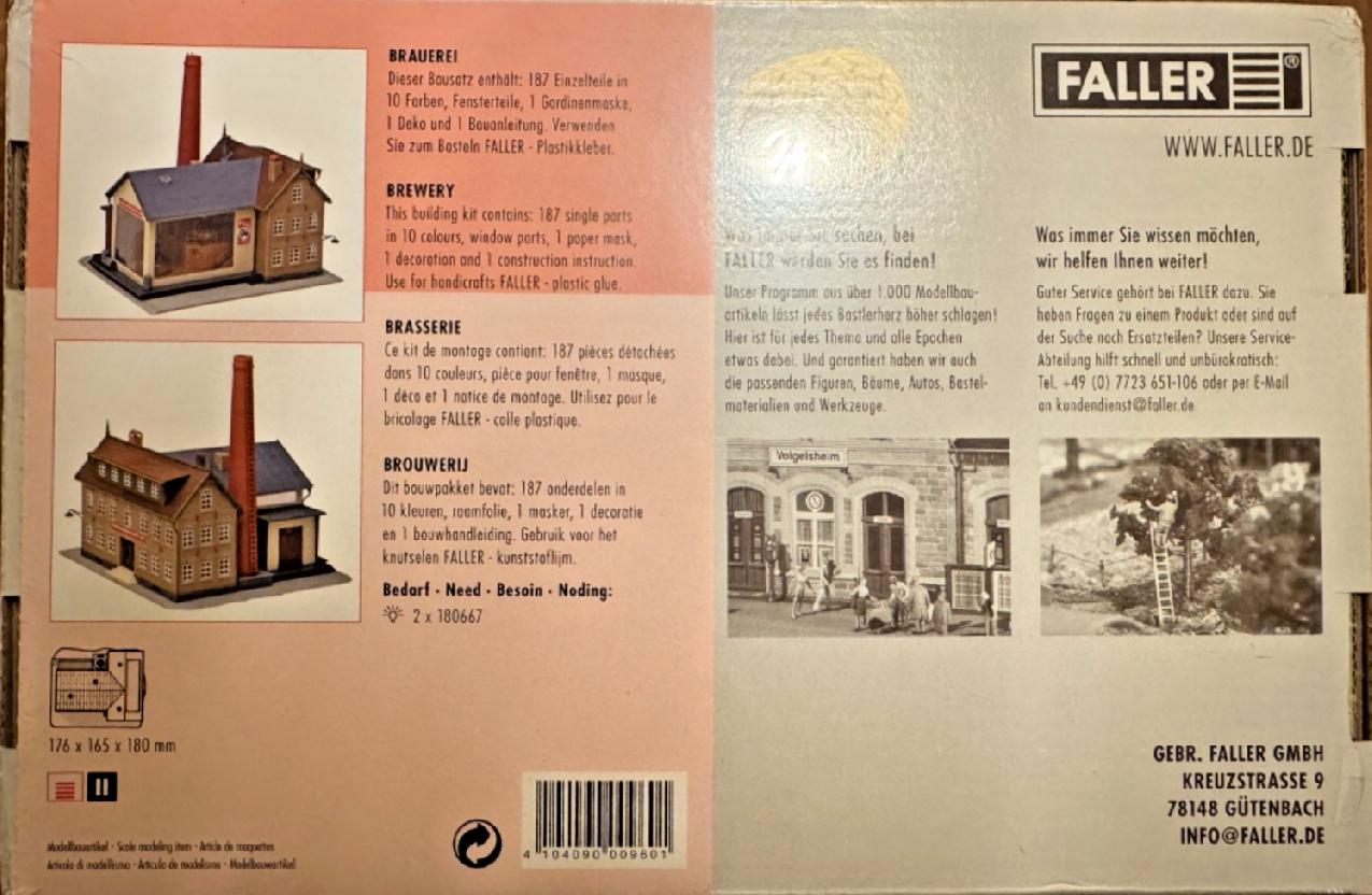 Eigenschaften "Faller H0 130960 - Brauerei - Brewery - 17,6 x 16,5 x 18 cm HO H0 1:87 NEU / OVP"