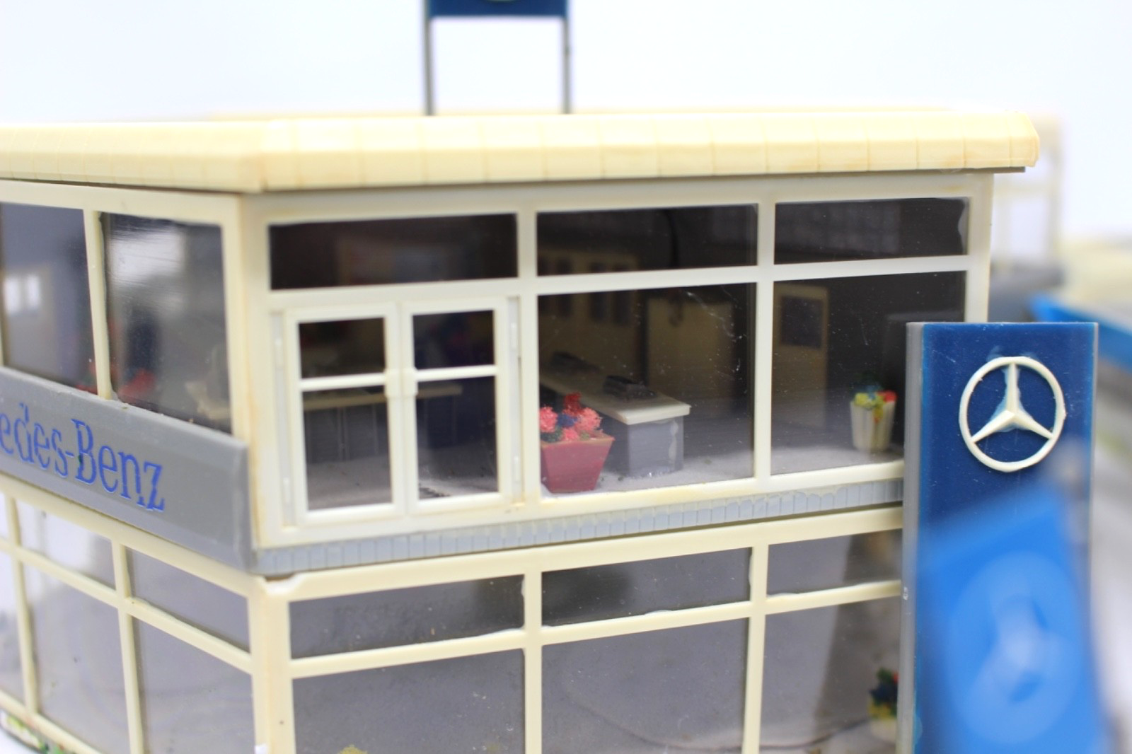 | Modell: | Mercedes Benz Autohaus mit Motor, Licht und Tankstelle |