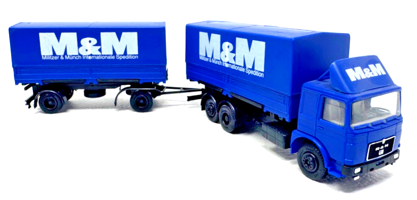 Herpa H0 MAN F8 M&M Militzer & Münch Wechselpritschen Hängerzug HO H0 1:87