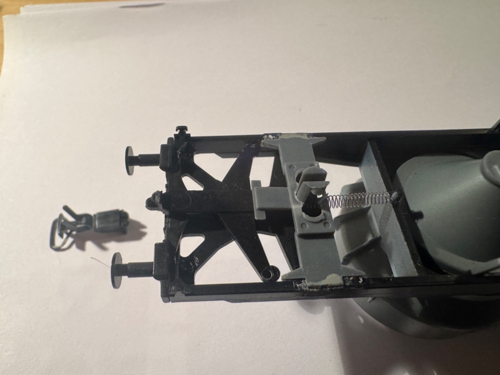 - Ein Drehgelenk muss wieder am Wagen angeklebt werden (2 Klebestellen)