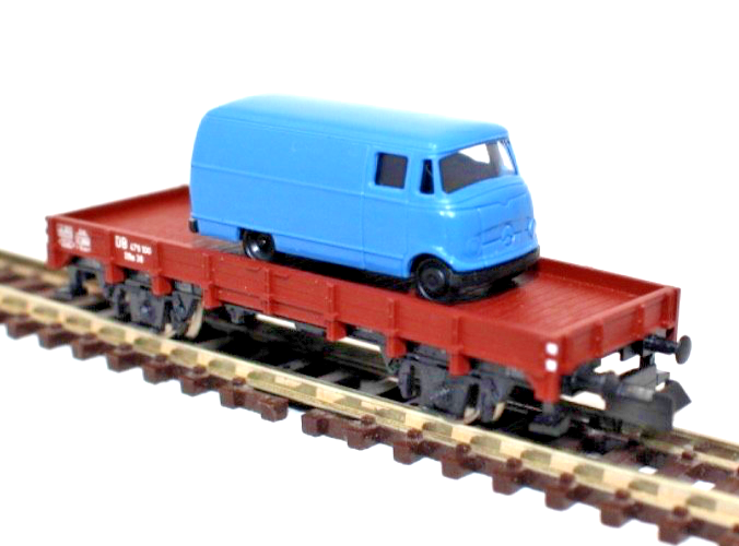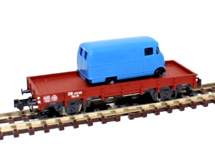Durch die Kombination aus Güterwagen und Fahrzeugladung eignet sich das Modell ideal zur Darstellung realistischer Transport- und Verladeszenen auf der Modellbahnanlage. Der Wagen ist in brauner Farbgebung gehalten, während der Transporter in blauer Lackierung ausgeführt ist und damit einen schönen optischen Kontrast bildet.