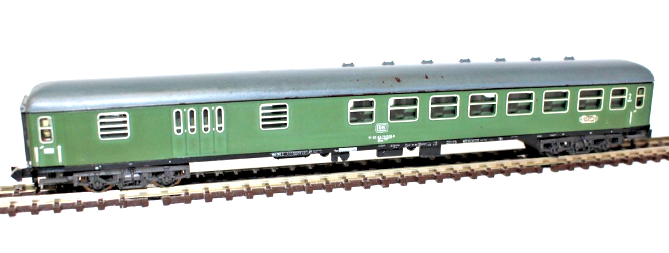 Das Modell bildet die Bauart BDüm273 nach und ist für Spur N im Maßstab 1:160 ausgeführt. Die typische grüne Farbgebung klassischer DB-Personenwagen sorgt für ein authentisches Erscheinungsbild und passt hervorragend zu historischen Schnellzug-Garnituren der Bundesbahnzeit.