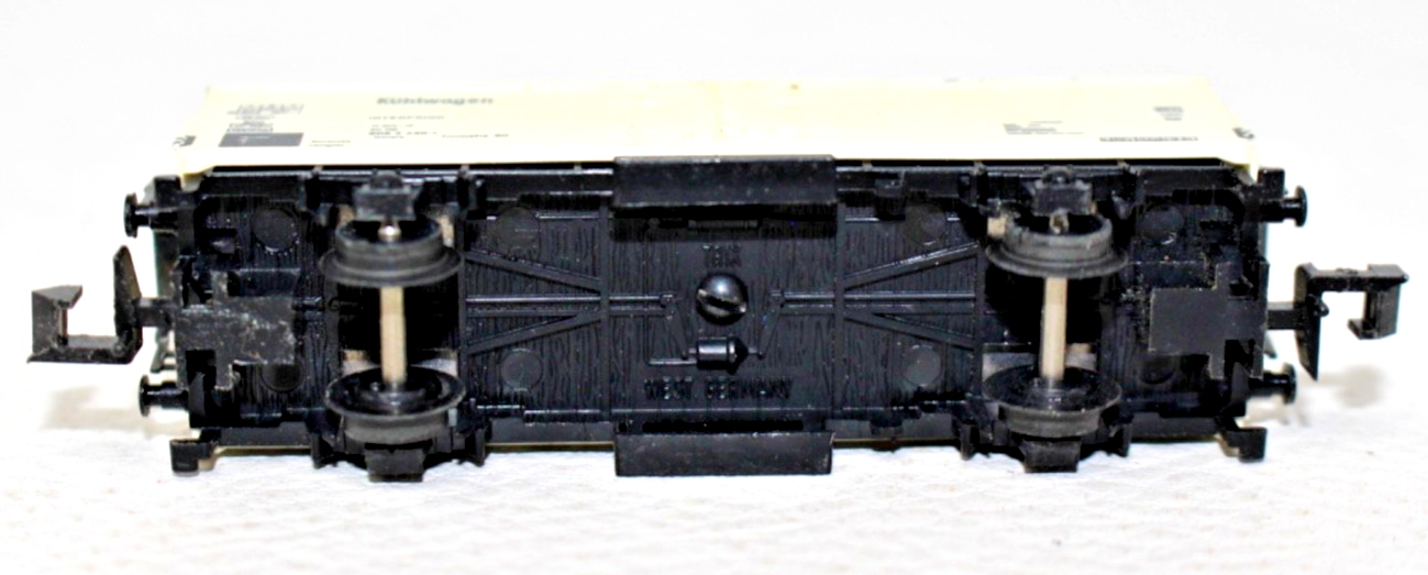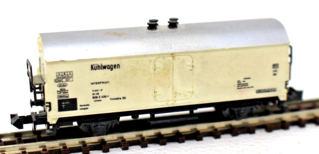 Mit einer Länge über Puffer von ca. 66 mm entspricht das Modell den üblichen Abmessungen klassischer zweiachsiger Kühlwagen in Spur N. Die feine Bedruckung und die saubere Farbtrennung sorgen für ein authentisches Erscheinungsbild auf der Modellbahnanlage.