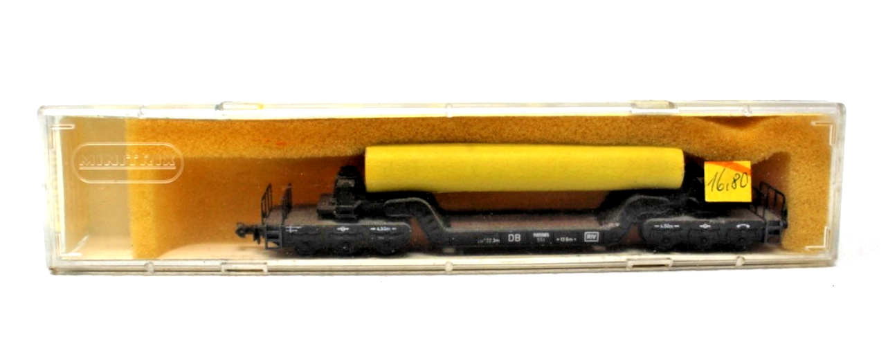 Minitrix N 51 3297 00 Tiefladewagen SSt 6-achsig mit Rohrladung – Spur N (1:160)