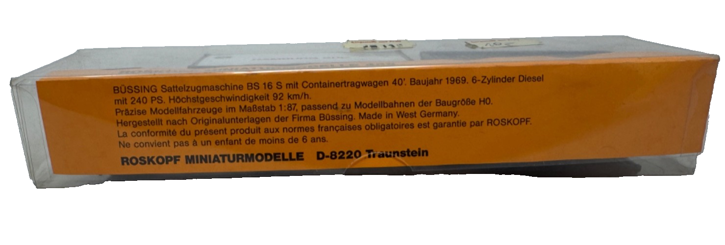 Eigenschaften "RMM Roskopf Büssing Sattelzug BS 16 S - mit Containertragwagen 40" - HO H0 1:87"