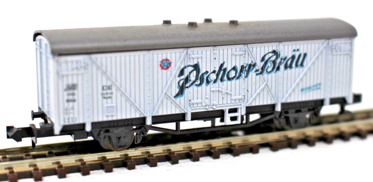 Solche Bierwagen wurden im Vorbild häufig für den Transport von Bierfässern und Getränken zwischen Brauereien, Lagerhäusern und Händlern eingesetzt. Dank der auffälligen Werbebeschriftung der Münchner Traditionsbrauerei Pschorr Bräu ist dieser Wagen ein besonderer Blickfang in jedem Güterzug.