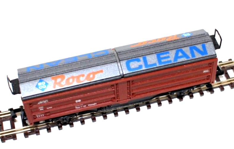 Der Roco 25093 Schienenreinigungswagen „Roco Clean“ ist ein praktischer Spezialwagen zur Reinigung der Gleise auf Spur-N Modellbahnanlagen (Maßstab 1:160). Das Modell basiert auf einem Güterwagen der Bauart Klmmgksder Deutschen Bundesbahn (DB) und wurde speziell mit einer integrierten Reinigungsfunktion ausgestattet.