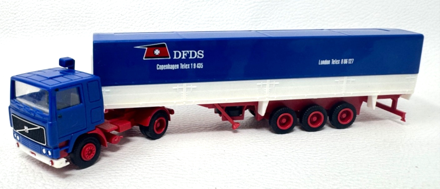 herpa Volvo F12 Pritschen - Plane - Sattelzug DFDS Copenhagen blau weiß rot - HO H0 1:87